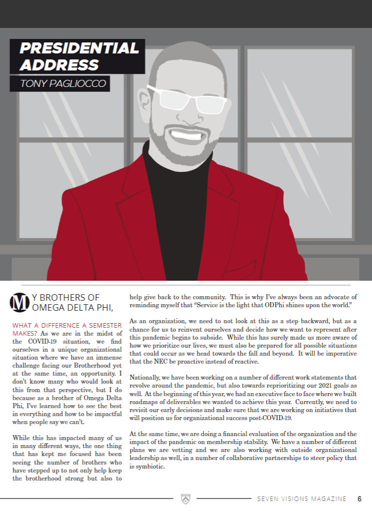 “We hope that the stories and voices contained here speak to you. ODPhi presses on in spite of a global pandemic and 7 Visions highlights the most honorable that as Knights we put forth. Enjoy!