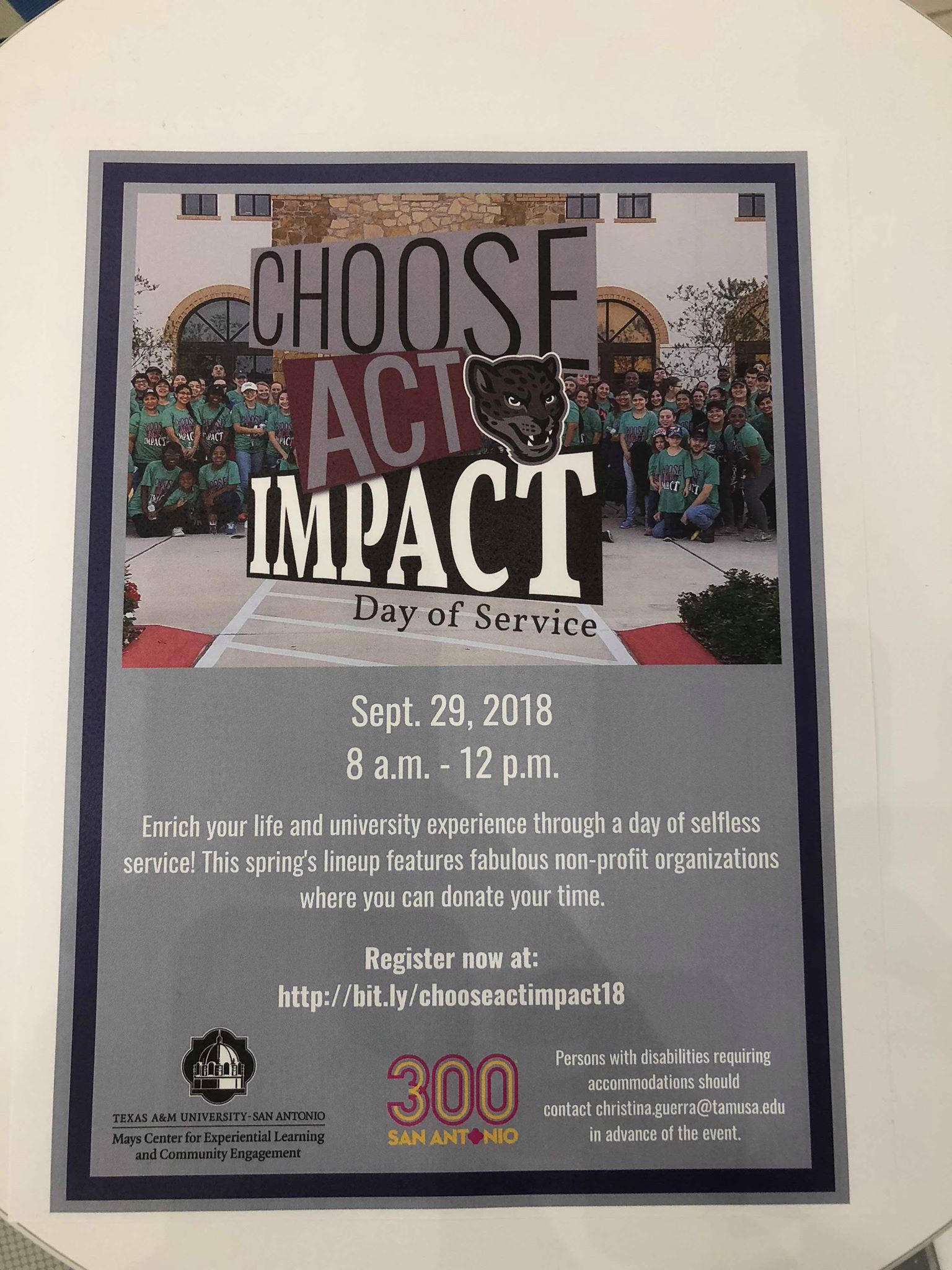 Students and organizations from TAMU-SA were able to identify causes in need of support and volunteers around the city of San Antonio. The causes were then assigned to student groups and job assignments created and distributed at an early morning kickoff event where students and volunteers were able to enjoy breakfast and fellowship among their fellow Jaguars. Tasks included volunteering at the San Antonio Food Bank, doing outreach at the Performing and Visual Arts High School in the Alamo City, as well as beautification efforts at the San Antonio River.
